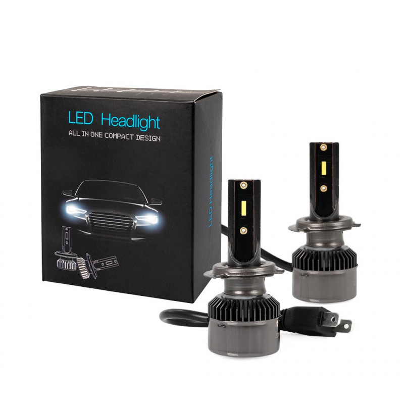 Este kit de conversión a led para bombilla H7 nos permite transformar la luz halógena original amarilla a luz blanca de led. Simplemente debemos cambiar las bombillas halógenas originales por estas dos bombillas de led.