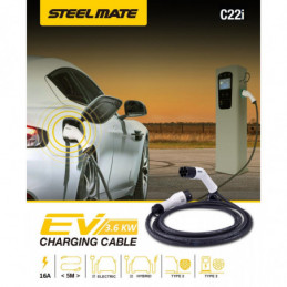 Cable de carga para coches eléctricos equipados con conector tipo 2, trifásico, 16A/480V, 11kW.
