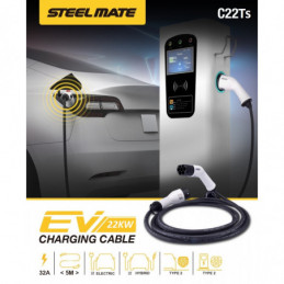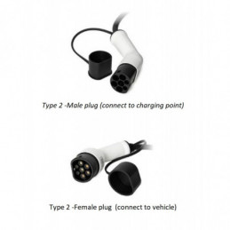 Cable de carga para coches eléctricos equipados con conector tipo 2, trifásico, 16A/480V, 11kW.