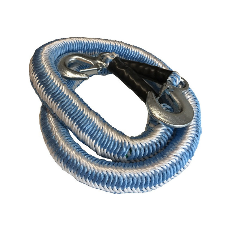 Cuerda 5 metros para remolque con dos ganchos metálicos. Ancho de la cuerda: 35mm. Máximo de utilización: 3 toneladas