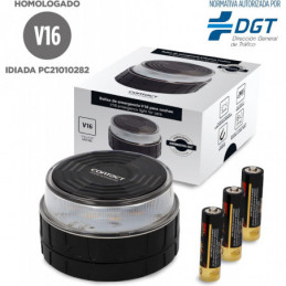 CONTACT - Baliza V16 de preseñalización de emergencias homologada por la DGT, Visibilidad: 360º, 3 Pilas AA Incluidas