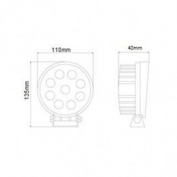 Lámpara de trabajo LED de alta resistencia con 9 LED y un flujo luminoso de 1430 lúmenes. Su diseño redondo y compacto garantiza una iluminación óptima para aplicaciones industriales y automotrices. Fabricada con carcasa de aluminio y lente de policarbonato, es resistente al agua y al polvo (IP67). Ideal para montaje en vehículos y maquinaria pesada.