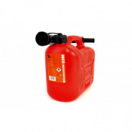 Práctico bidón de gasolina de plástico con capacidad para 10 litros de combustible. El bidón de comustible incluye el surtidor y cumple con las normativas de seguridad europeas.