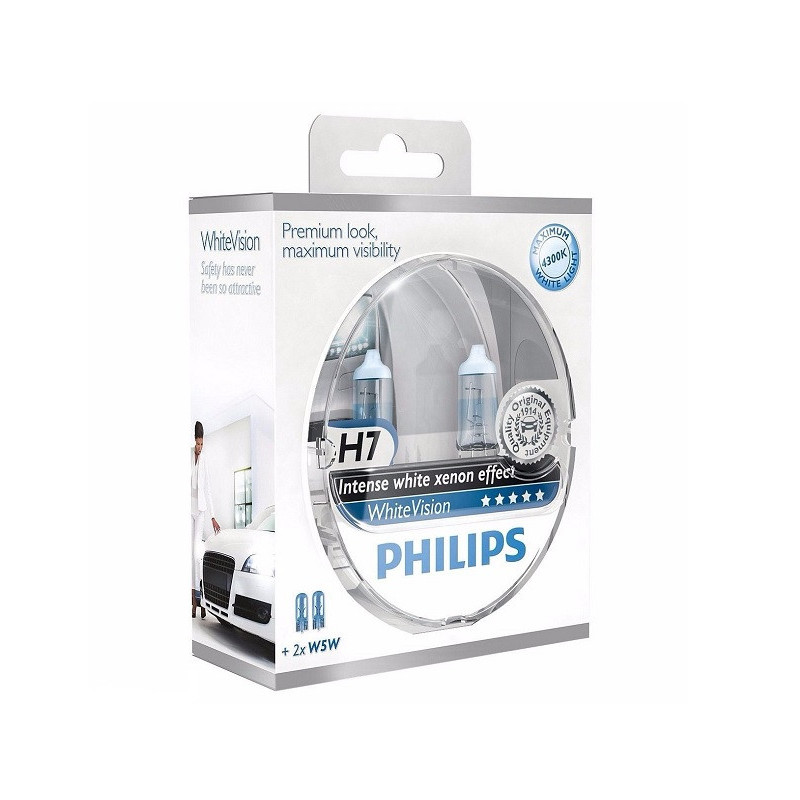 Las lámparas Philips WhiteVision aportan un toque de xenón blanco intenso a los faros del coche para conducir cómodamente por la noche. El brillo aumentado, con una luz un 40% más blanca, combina a la perfección estilo y seguridad.