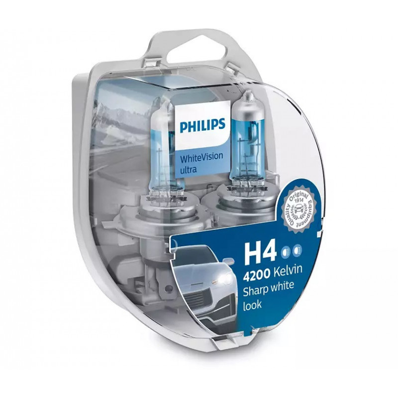 Estuche Philips WhiteVision Ultra H4/W5W 12342WVU. Bombillas halógenas con brillo tipo LED para su coche, con calidad Philips.