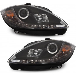 Estos faros delanteros para el Seat León II 1P (2005 a 2009) nos permiten añadirle a nuestro coche luz diurna de led. Mejore la estética y la seguridad de su Seat León 2 con estos faros homologados.