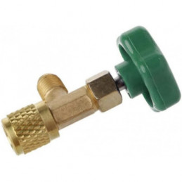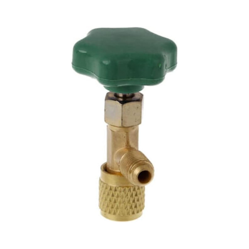 Adaptador de válvula refrigerante ideal para sistemas de aire acondicionado, diseñado para garantizar un sellado hermético y libre de fugas. Fabricado en latón y acero inoxidable con una estructura robusta y resistente. Compatible con rosca 7/16 28UNF y equipado con una perilla de plástico para un manejo cómodo y seguro. Perfecto para aplicaciones de refrigeración y aire acondicionado.