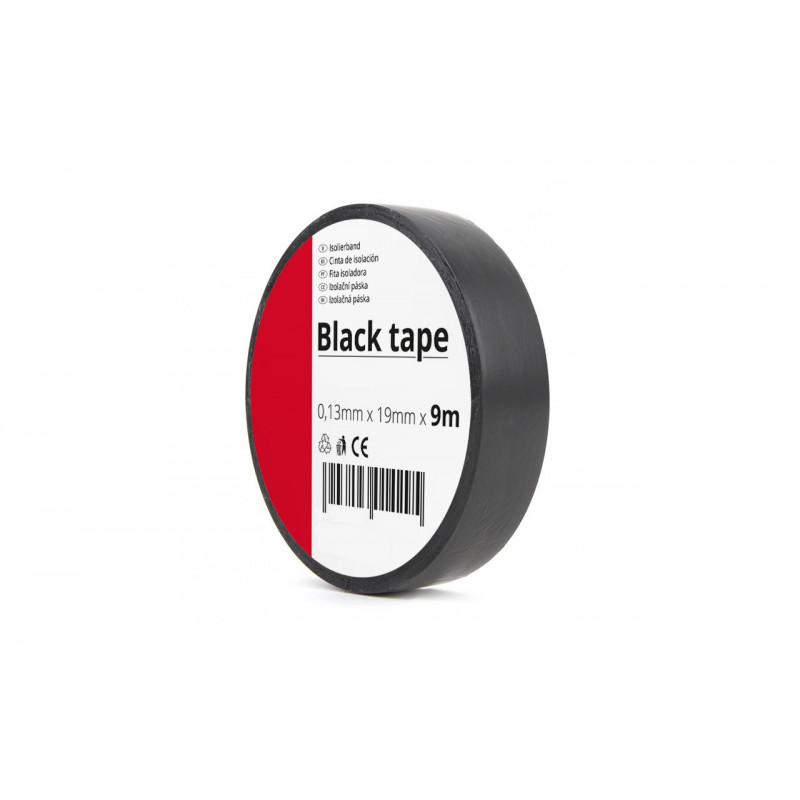Cinta aislante de alta calidad en color negro. Esta cinta aislante negra tiene estas dimensiones: 25 milímetros x 9 metros.