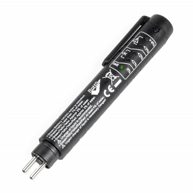 El funcionamiento del tester es sencillo y eficiente. Para realizar la prueba, solo es necesario encender el dispositivo mediante un botón ubicado en la parte superior, similar al de un bolígrafo. A continuación, se retira la tapa inferior y se sumergen las dos electrodos del tester en el depósito del líquido de frenos. En cuestión de segundos, el usuario podrá leer el resultado a través de las cinco diodos de control que indican el nivel de humedad presente en el líquido.