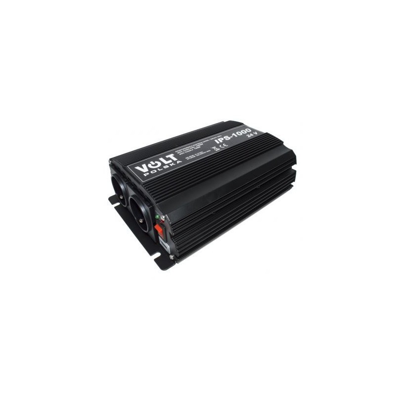 Inversor de corriente para convertir 12 voltios a 230 voltios. Su potencia máxima son 1.000 watios e incluye una salida USB y de enchufe 230V.