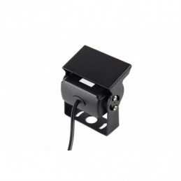 Cámara de visión trasera universal diseñada para vehículos comerciales y furgonetas, con un ángulo de visión horizontal de 105 grados. Ofrece resolución de 800TVL, líneas de guía opcionales y función de imagen en espejo. Incluye soporte en U para montaje superficial y es compatible con sistemas de 12V y 24V.
