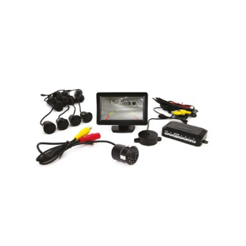 Sensor de Aparcamiento con pantalla TFT 4,3"' y cámara LED 18mm (Vision Nocturna). 4 sensores traseros de color negro.