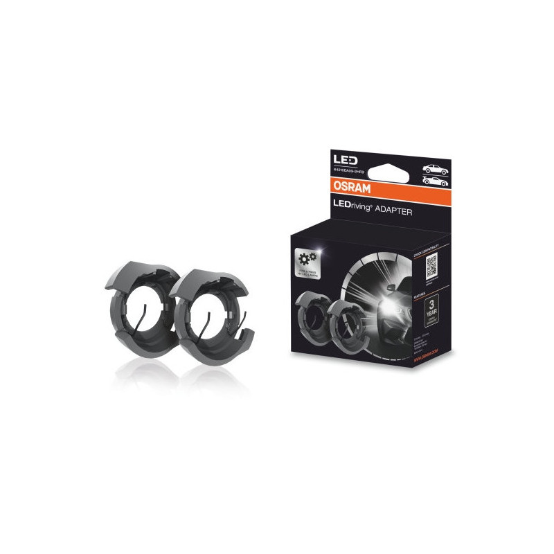 Los adaptadores de montaje DA09 son diseñados específicamente para la lámpara NIGHT BREAKER LED H7-LED, la primera lámpara LED H7 legal en Alemania. Estos adaptadores facilitan una instalación sencilla y son compatibles con una amplia gama de modelos de vehículos. Para verificar la compatibilidad de su vehículo, puede consultar la lista en el sitio web de OSRAM a través del siguiente enlace: Consultar lista de compatibilidad .