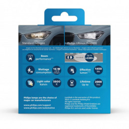 Los LED Philips H7 Ultinon Pro6000 Boost ofrecen un increíble aumento de la potencia luminosa, hasta un 300% más que las bombillas halógenas estándar. Esto las hace perfectas para los conductores que necesitan la luz más brillante posible. La luz LED blanca de 5800K es la misma temperatura de color que la elegida por los fabricantes de equipos originales,...