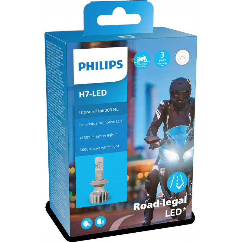 Bombillas LED homologadas en España: con el nuevo LED Philips Ultinon Pro6000 H7 ahora puede cambiar a nuestra tecnología LED probada y segura simplemente cambiando la lámpara. Los chips LED automotrices exclusivos de Lumileds mejoran su visión y brindan un brillo revolucionario con una luz hasta un 230% más brillante