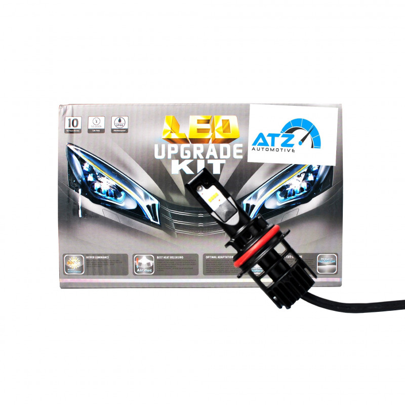Kit de conversión a LED 9007 (tipo 2) de la marca ATZ automotive para convertir la luz halógena amarilla original de nuestros faros a luz blanca pura de led. Kit con refrigeración activa por electroventilador en cada bombilla (color blanco puro).