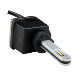Kit de conversión a LED H3 (tipo 2) de la marca ATZ automotive para convertir la luz halógena amarilla original de nuestros faros a luz blanca pura de led. Kit con refrigeración activa por electroventilador en cada bombilla (color blanco puro).