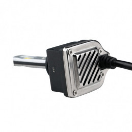 Kit de conversión a LED para bombillas H1 (tipo 2) de la marca ATZ automotive para convertir la luz halógena amarilla original de nuestros faros a luz blanca pura de led. Kit con refrigeración activa por electroventilador en cada bombilla (color blanco puro).
