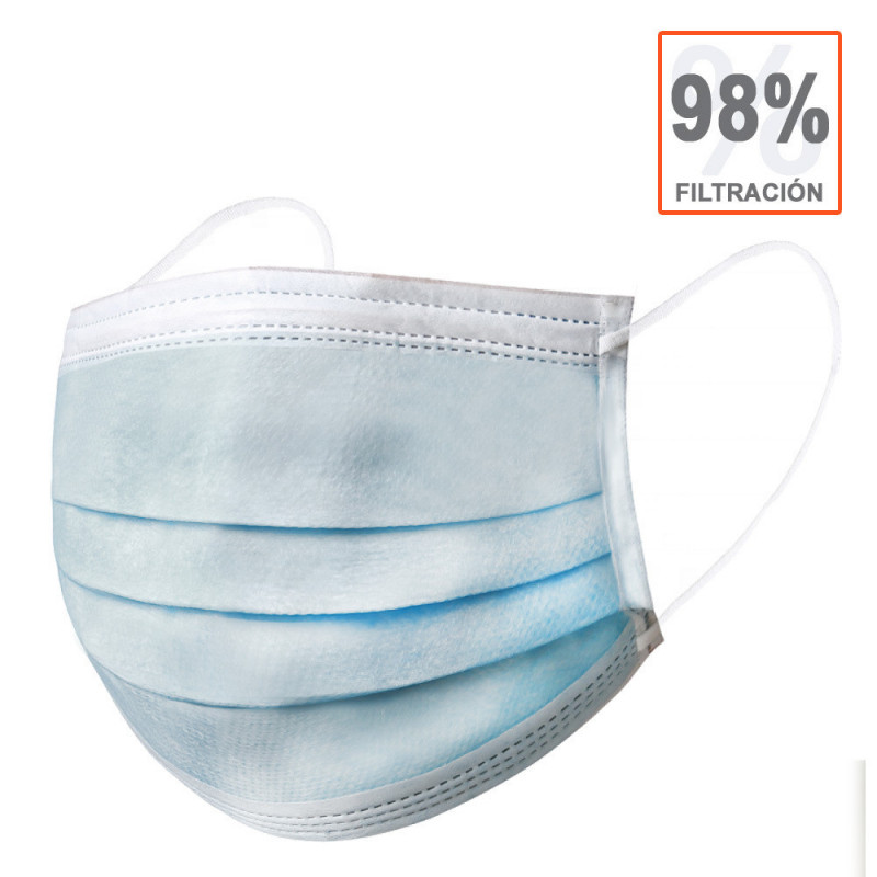 Las mascarilla desechables quirúrgicas son de tipo IIR, tiene una eficacia de filtración bacteriana superior al 98%.