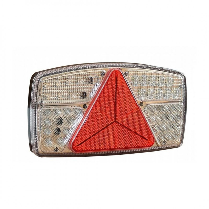 Piloto de led universal trasero con forma triangular, lado izquierdo. Funciona a 12 y 24 voltios