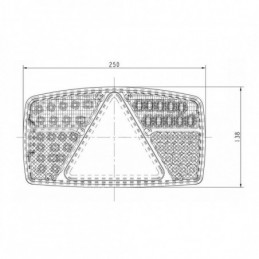 Piloto de led universal trasero con forma triangular, lado izquierdo. Funciona a 12 y 24 voltios