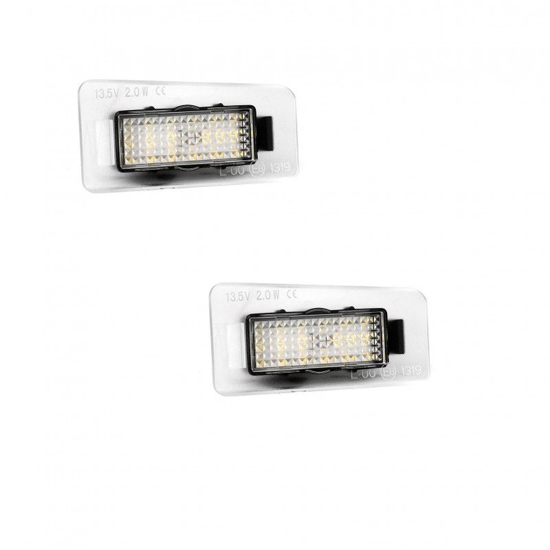 Estos plafones de 18 leds son compatibles con la matrícula trasera de varios modelos de Mercedes y Chrysler. Su aplicación más importante es el Mercedes W209.