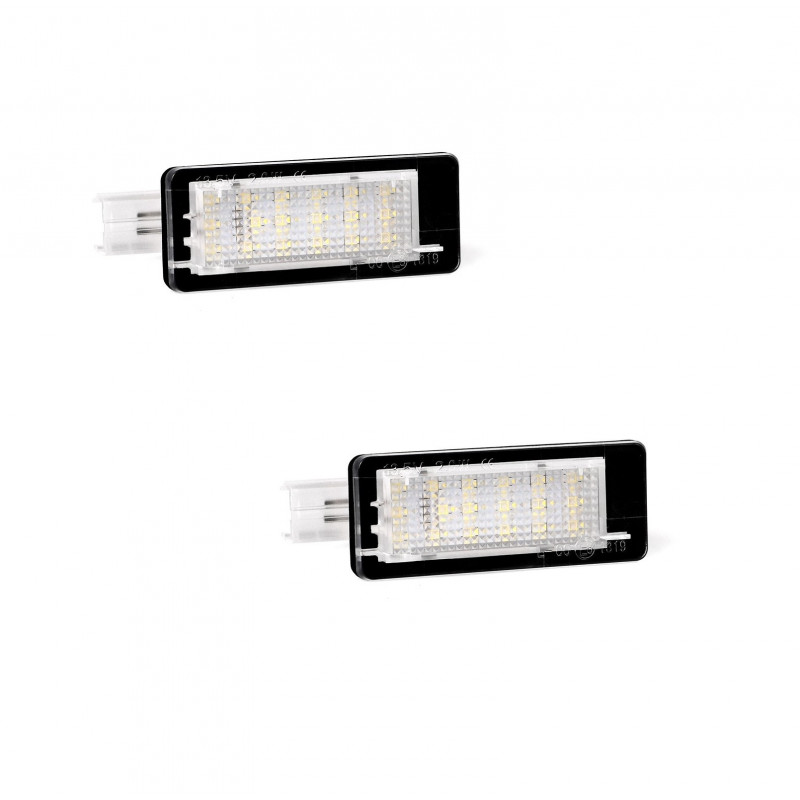 Estos plafones de 18 leds son compatibles con la matrícula trasera de varios modelos de Mercedes y Chrysler. Su aplicación más importante es el Mercedes W209.
