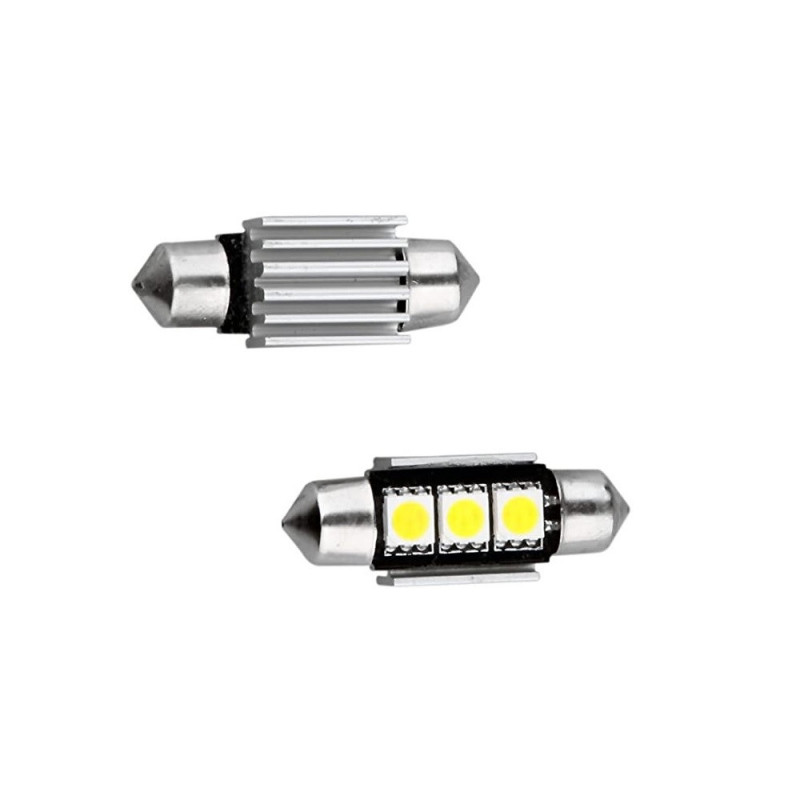 2 bombillas de led blancas de tipo plafonier c5w / c10w en 36 mm. Estas bombillas led COB3 tienen tecnología can-bus para evitar el fallo de bombilla fundida.