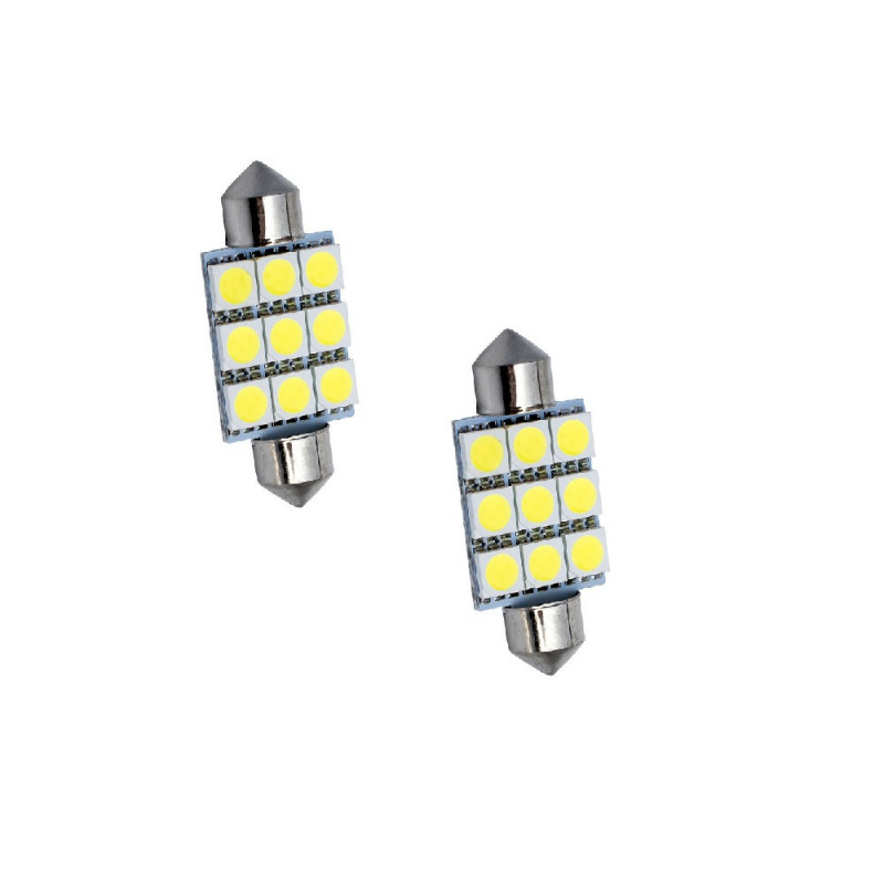 2 bombillas de led blancas de tipo plafonier c5w / c10w en 39 mm. Estas bombillas led tienen tecnología can-bus para evitar el fallo de bombilla fundida, y cada bombilla tiene 1 led SMD.