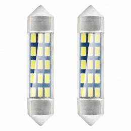 2 bombillas de led blancas de tipo plafonier c5w / c10w en 39 mm. Estas bombillas led COB3 tienen tecnología can-bus para evitar el fallo de bombilla fundida.