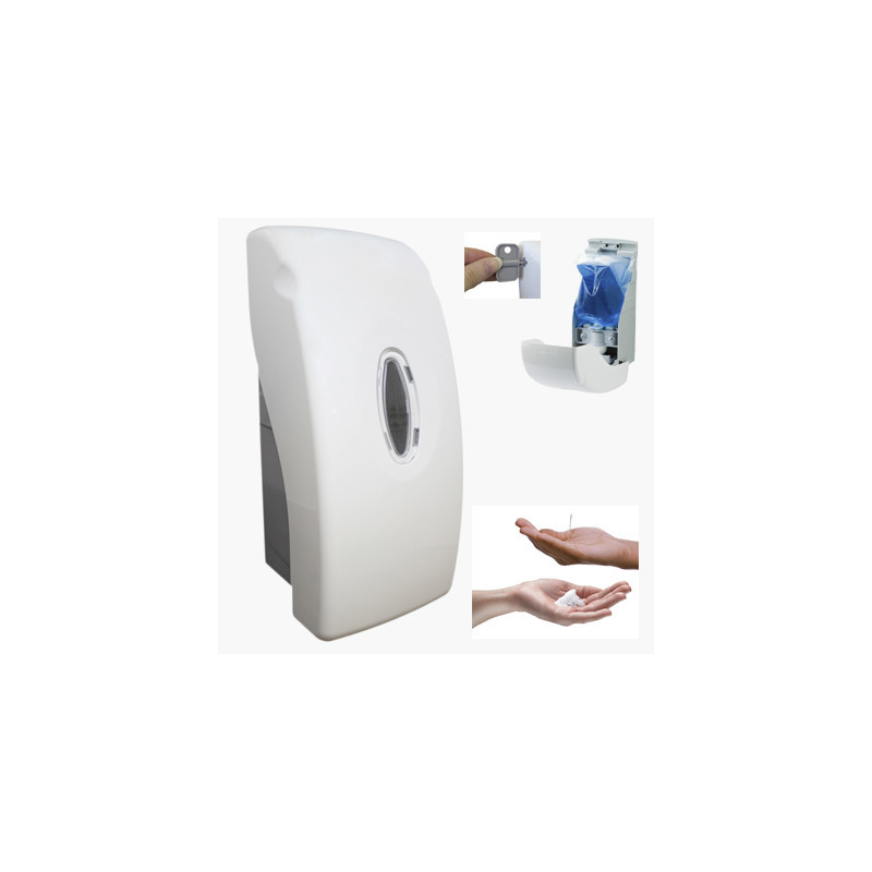 Dispensador de gel hidroalcohólico con activación mecánica con el pie.