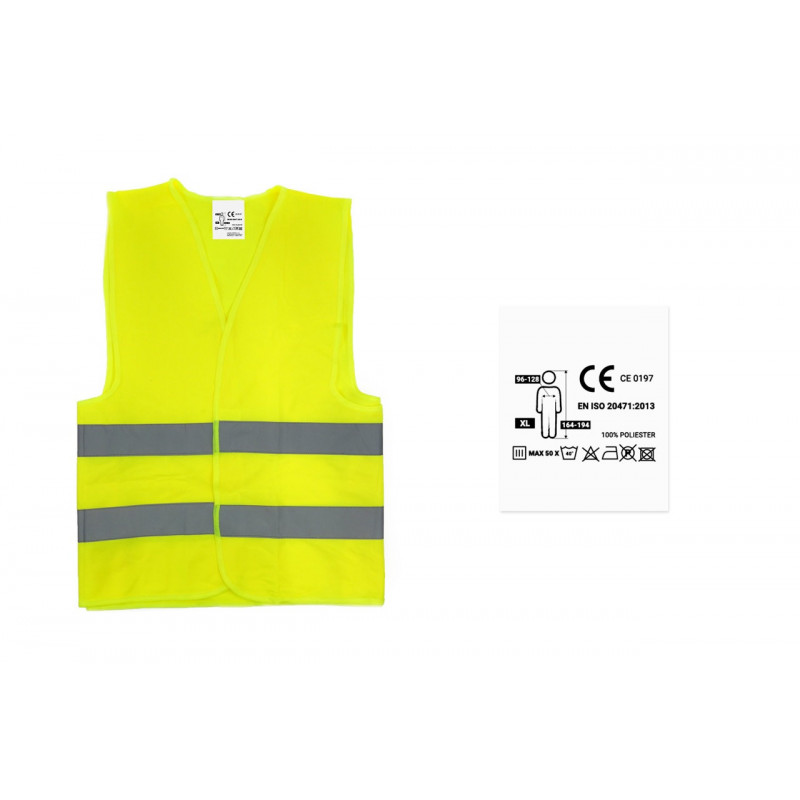 Este chaleco reflectantestá fabricado al 100% con poliester y cumple con las normativas europeas en vigor: